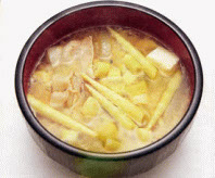 独特の食感が人気の根曲がり竹を使ったお味噌汁。コキュコキュとした食感が人気の山菜です。微かな山の風味と高長味噌の相性も抜群です。